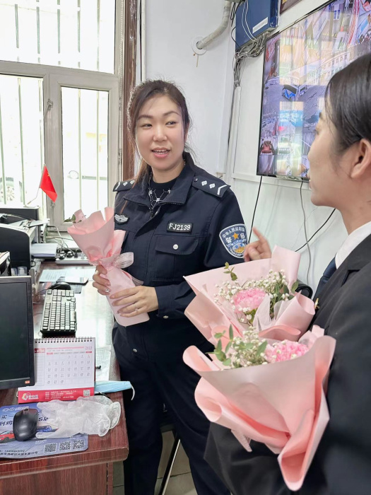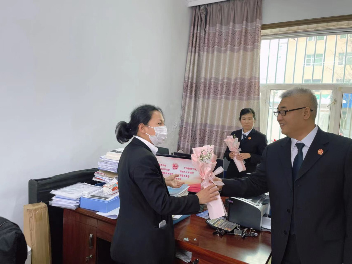 女神节系列活动之献花送祝福。清晨上班,院领导刘继东亲手为每一名女干警献上一束鲜花并送上节日的祝福。表达着院党组对全体女干警的美好祝愿和期许。女干警们在惊喜之余都被院党组的细心所深深感动,纷纷表示在今后的工作中要加强学习,提升能力,争取作出更多的成绩,展现巾帼风采。